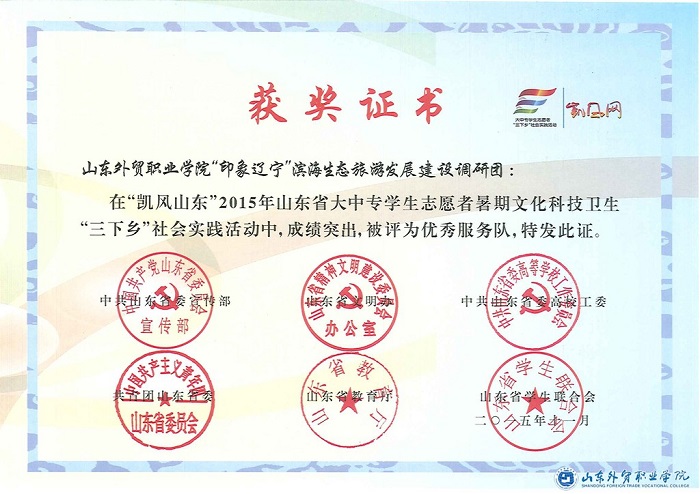 在此次评比活动中,我院“印象辽宁”滨海生态旅游发展建设调研团和“碧海蓝天小分队”被评为优秀服务队;国际贸易系教师张秀华和经济管理系辅导员谭晓栋被评为优秀指导教师;2013级国贸9班高知国、2013级物流2班徐敏和2014级国贸7班葛鑫垚被评为优秀学生。